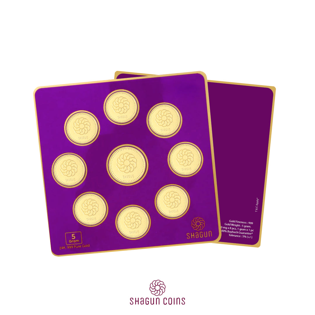 Looking for a gift that feels more meaningful than handing over money? Choose the 1.250 gramx8 24K 999 Pure Coin from Shagun Coins — a thoughtful, lasting gift that blends tradition with elegance.