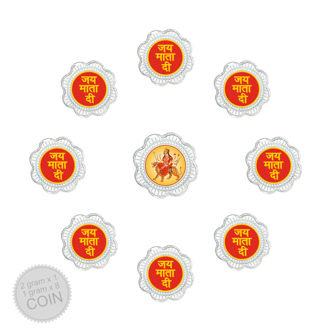 This thoughtfully curated pack includes 1 coin of 2 grams and 8 coins of 1 gram each, all made with high-purity silver and embossed with traditional motifs like Goddess Lakshmi — symbolising prosperity and auspiciousness.