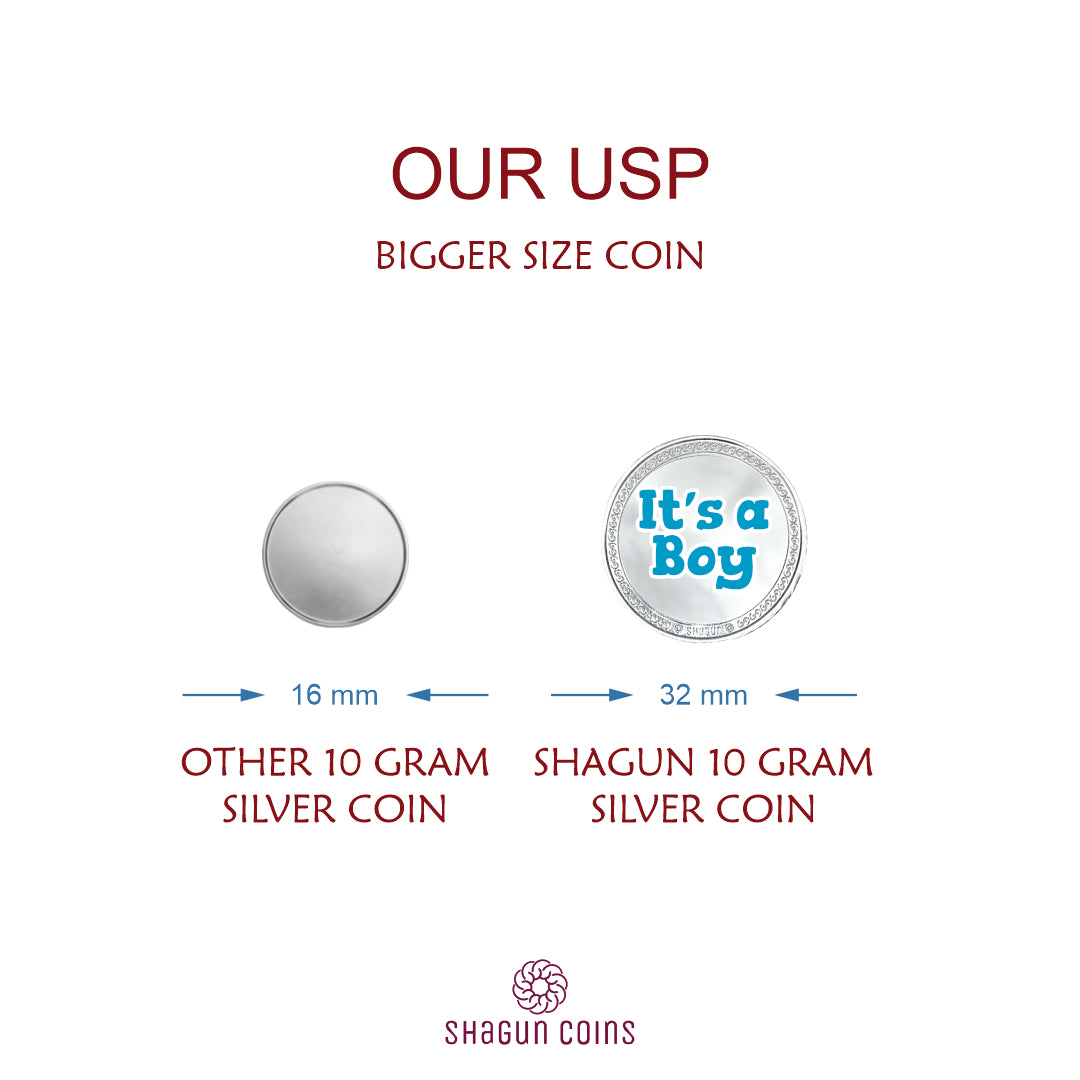 Each coin is designed with a larger surface area than standard coins of the same weight, giving them a standout, luxurious appearance. Whether it’s a wedding, baby shower, housewarming, festival, or return gift — this silver coin set expresses blessings more meaningfully than an envelope of money ever could.