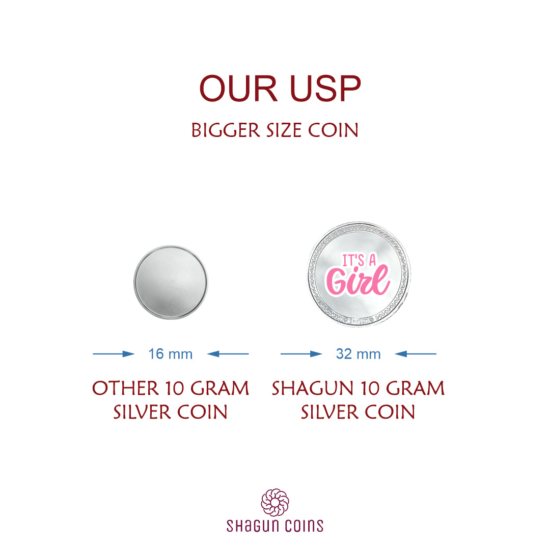 Each coin is designed with a larger surface area than standard coins of the same weight, giving them a standout, luxurious appearance. Whether it’s a wedding, baby shower, housewarming, festival, or return gift — this silver coin set expresses blessings more meaningfully than an envelope of money ever could.
