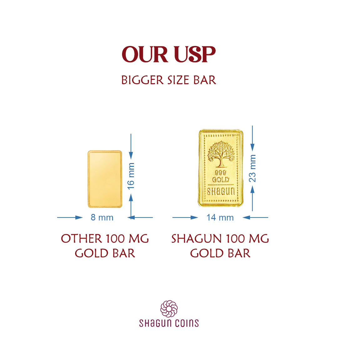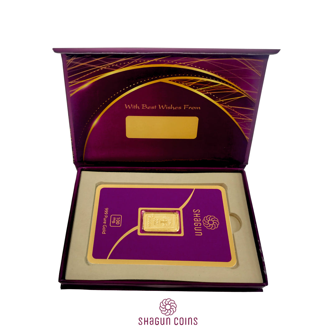 Looking for a gift that feels more meaningful than handing over money? Choose the 100mg 24K 999 Pure Bar from Shagun Coins — a thoughtful, lasting gift that blends tradition with elegance.