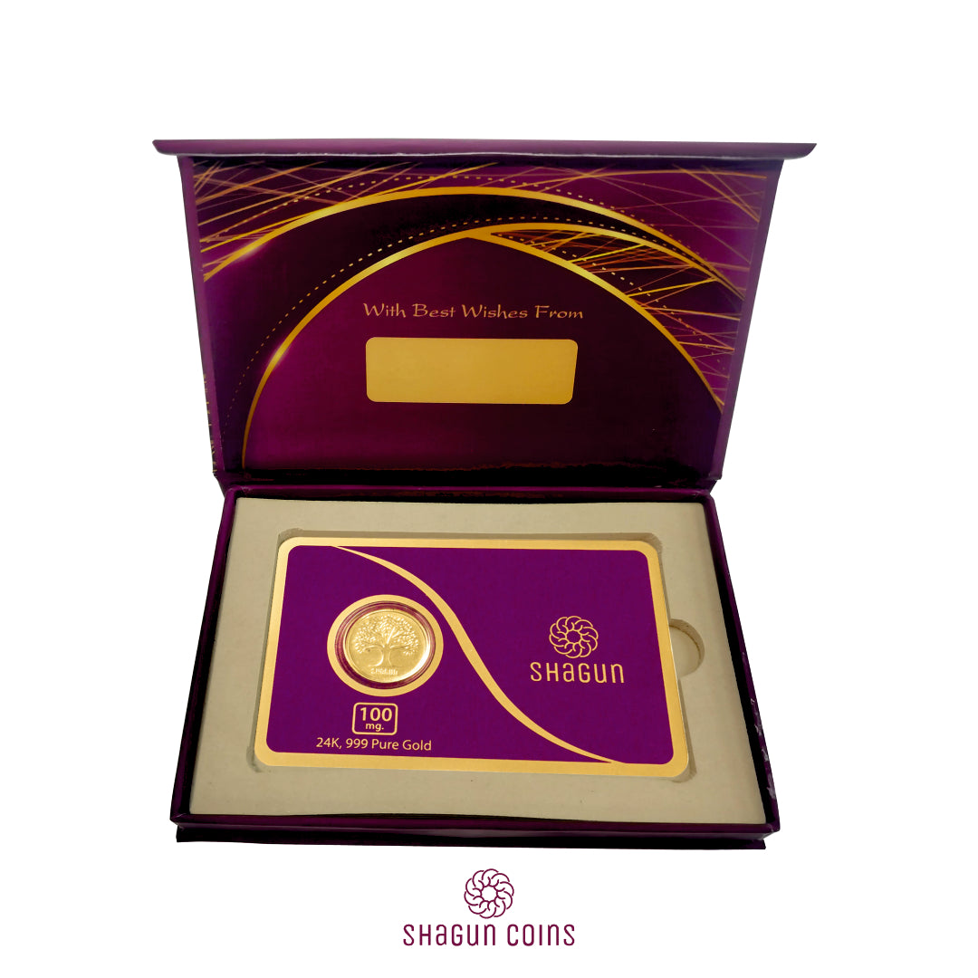 Looking for a gift that feels more meaningful than handing over money? Choose the 100mg 24K 999 Pure Coin from Shagun Coins — a thoughtful, lasting gift that blends tradition with elegance.