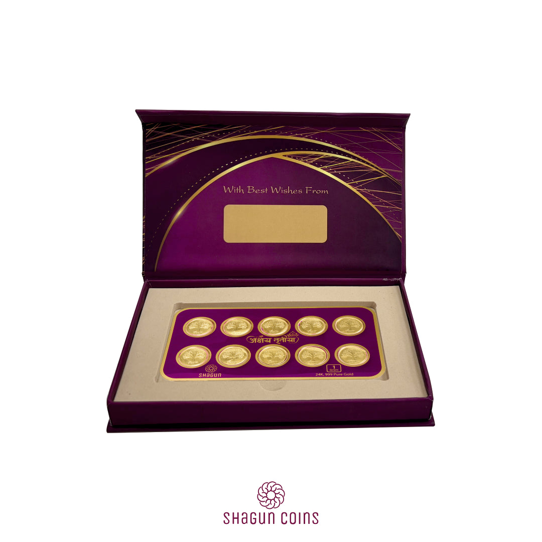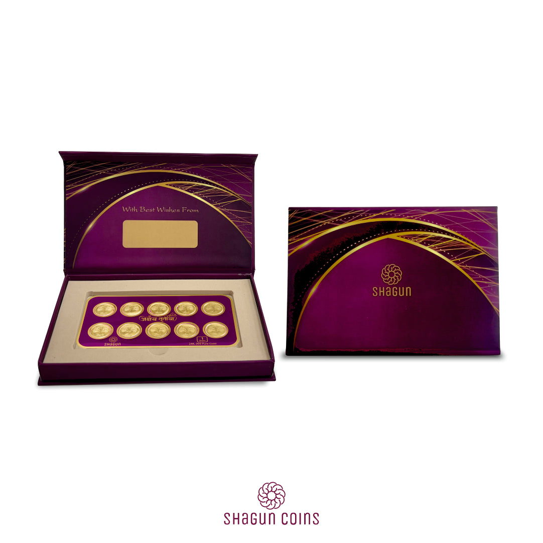 Looking for a gift that feels more meaningful than handing over money? Choose the 100mgx10 24K 999 Pure Coin from Shagun Coins — a thoughtful, lasting gift that blends tradition with elegance.
