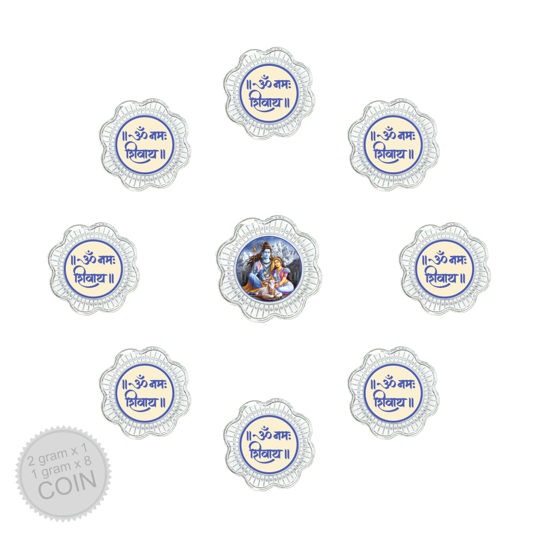 This thoughtfully curated pack includes 1 coin of 2 grams and 8 coins of 1 gram each, all made with high-purity silver and embossed with traditional motifs like Goddess Lakshmi — symbolising prosperity and auspiciousness.