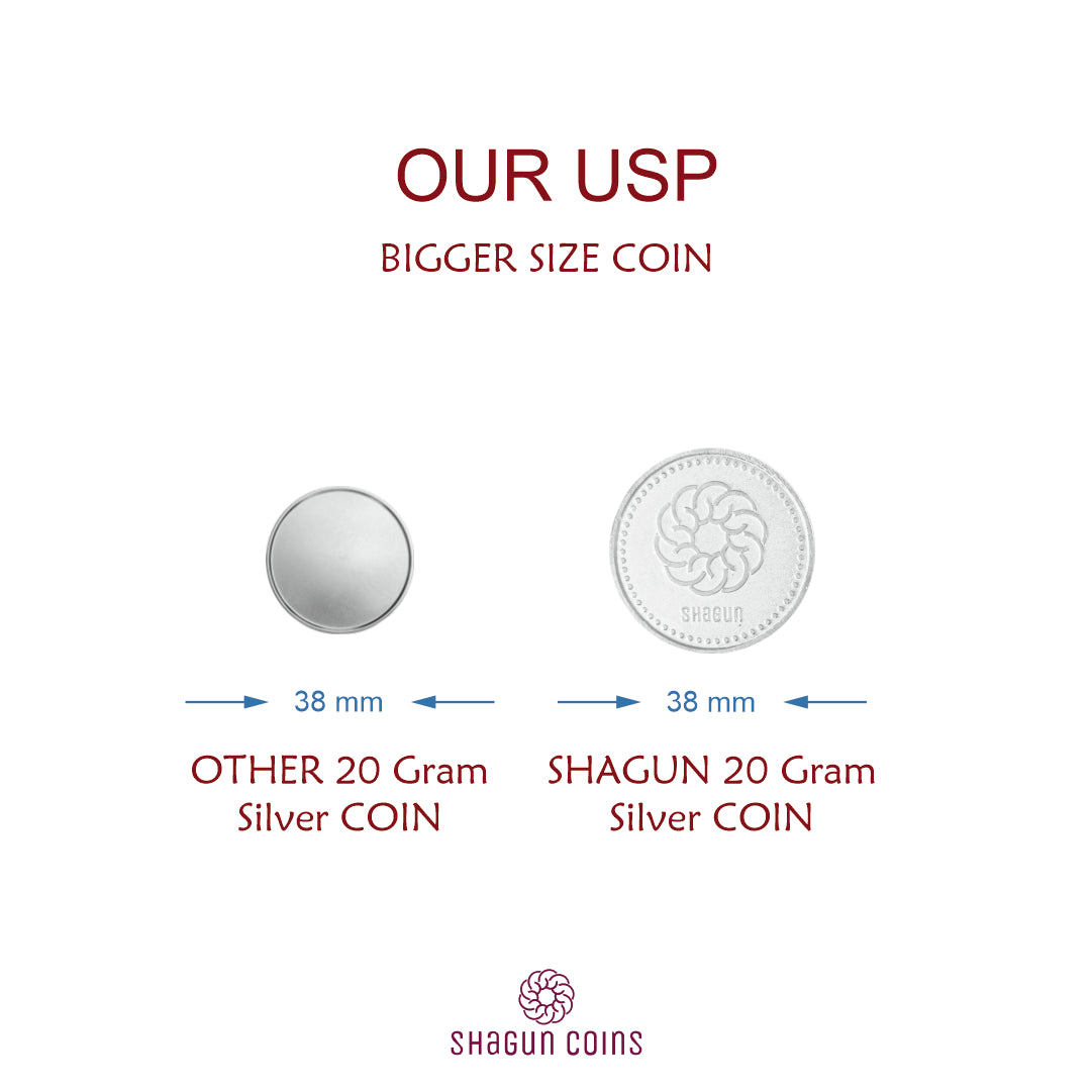 Looking to gift something more meaningful than just money? Choose the 20 Gram Pure Silver Coin from Shagun Coins — a thoughtful, elegant alternative that blends tradition with beauty.