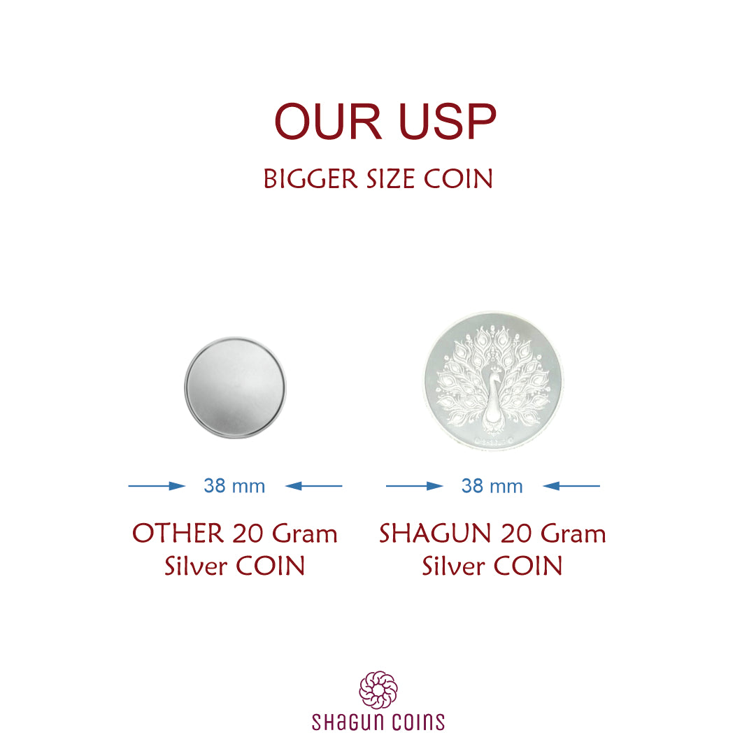 Looking to gift something more meaningful than just money? Choose the 20 Gram Pure Silver Coin from Shagun Coins — a thoughtful, elegant alternative that blends tradition with beauty.