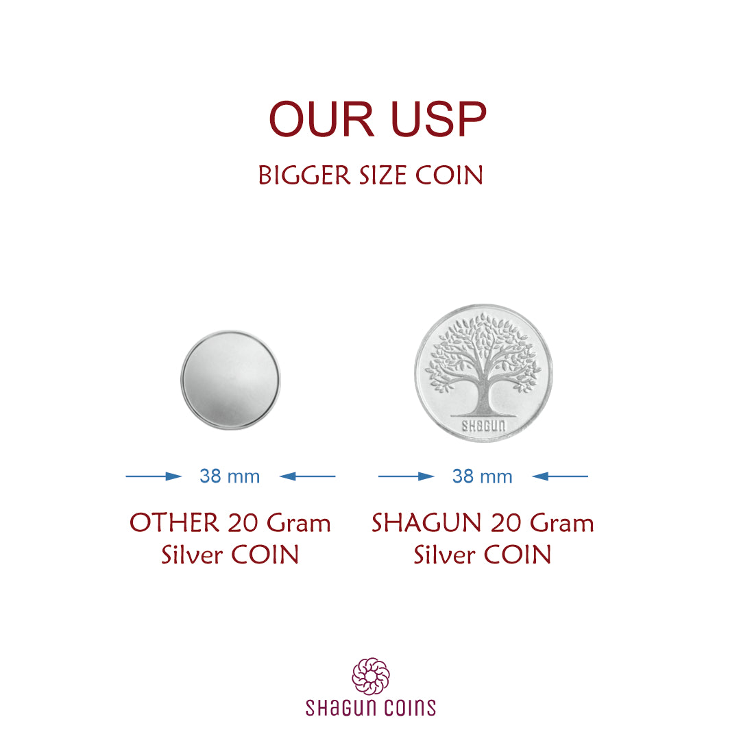 Looking to gift something more meaningful than just money? Choose the 20 Gram Pure Silver Coin from Shagun Coins — a thoughtful, elegant alternative that blends tradition with beauty.