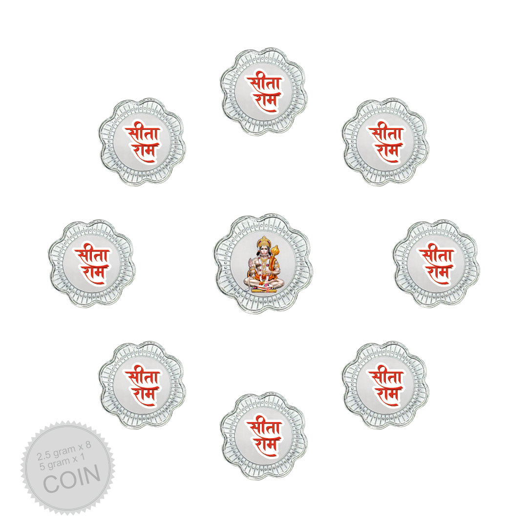 This thoughtfully curated pack includes 1 coin of 5 grams and 8 coins of 2.5 gram each, all made with high-purity silver and embossed with traditional motifs like Goddess Lakshmi — symbolising prosperity and auspiciousness.