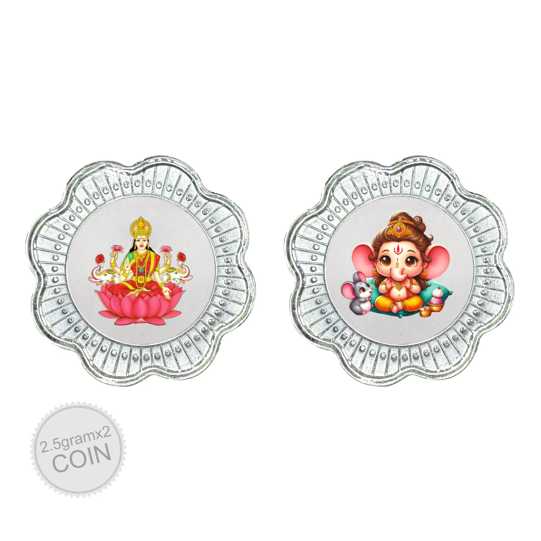 5 Gram Silver Coin Set - Lakshmi Ganesh Ji